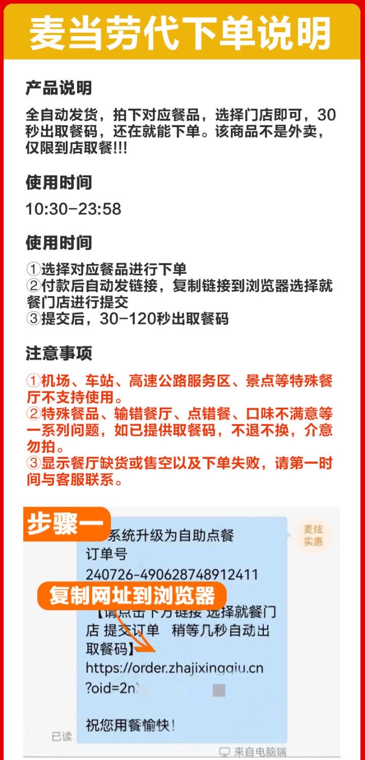 4.代下时间:24h自动发货,门店营业时间内可下单取餐;