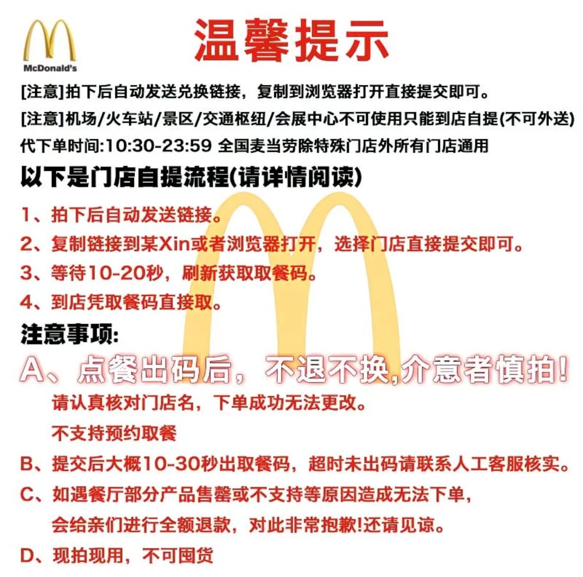 麦当劳代下单优惠券小食超值全国可用自动发货门店自取